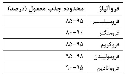 ۳. محدوده معمول جذب برای فروآلیاژهای مختلف