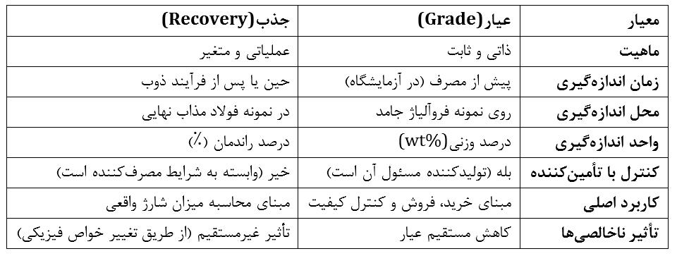 درک تفاوت این دو مفهوم برای محاسبات متالورژیکی، قیمتگذاری و کنترل فرآیند ضروری است.